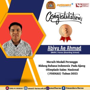 Dalam ajang Olimpiade Sains Nasional (FOSNAS) bidang Bahasa Indonesia yang diselenggarakan secara online, Abiyu Ae Ahmad, siswa kelas X Fase E meraih medali perunggu. Semoga di kesempatan berikutnya lebih baik lagi.